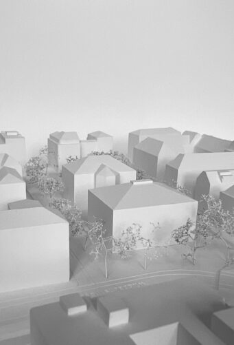 auf die bestehende Schule. Von der Strasse abgerückt, in der Arealmitte und von einem zusammenhängenden Grünraum umgeben, besetzt das kompakte Volumen das Grundstück so wenig wie möglich. Das Schulareal wird so durchlässiger und es entsteht Platz für neue Bäume, wobei dieses Potenzial im Wurzelbereich der beiden Bestandsbäume an der Wildbachstrasse nicht einfach einzulösen ist. Das Projekt nimmt die Grösse und Höhenentwicklung des Schulhauses auf und fügt sich präzise in die Situation ein. Ein pavillonartiges Pendant zum klassizistischen Schulbau wird gebildet. Der hohe Sockel verbindet sich mit dem Aussenraum und schafft eine öffentliche Umgebung. Das Projekt überzeugt durch seine städtebauliche Setzung und die präzisen Bezüge im Kontext. Das Areal wird durchlässiger und die geschützte Platane räumlich präsenter.“