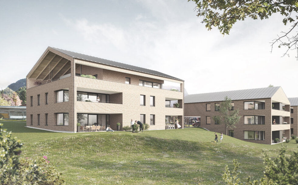 Maßstäblich gekörnte Baukörper, dem natürlichen Gelände folgend und in Beziehung zueinander gesetzt, ermöglichen eine optimale Belichtungssituation, qualitätsvolle Außenräume und Privatsphäre. Die parkähnlich angelegten Freiflächen geben spannende Sichtachsen Richtung Hangfuß frei und sind durchwegt von abwechslungsreich geführten ebenerdigen Arealzugängen. Holz und Natursteinoberflächen prägen die Atmosphäre, der Einsatz von robusten, lokalen und ökologischen Baumaterialien unterstützt die regionale Wertschöpfung.